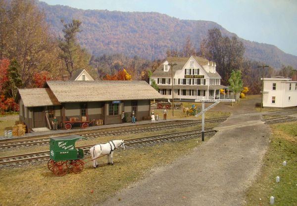 This meticulously researched and constructed layout depicts the Union, Sanbornville, Wakefield Corner, Burleyville, and Mathews railroad stations as they existed in 1909 as well as the surrounding historic buildings in the town. For historical accuracy, the actual track plans were obtained for the five villages from the Boston and Maine Railroad archives located at the University of Massachusetts-Lowell.